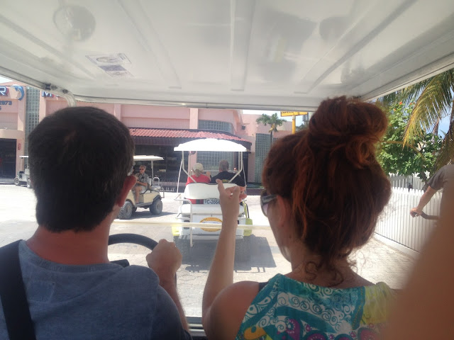 Tras tres días regresamos al sur (San Pedro) y estuvimos otras tres noches en el Hotel Exotic Caye, también sin desayuno incluído y con cocina completa. Alquilamos un carro de golf, que condujimos los tres, y recorrimos buena parte del sur de la isla, más animada y con más ambiente (tampoco mucho!), locales con música en directo,…. a las noches no bajaba de 26 grados. Mucho rastafari. Playas con algas.